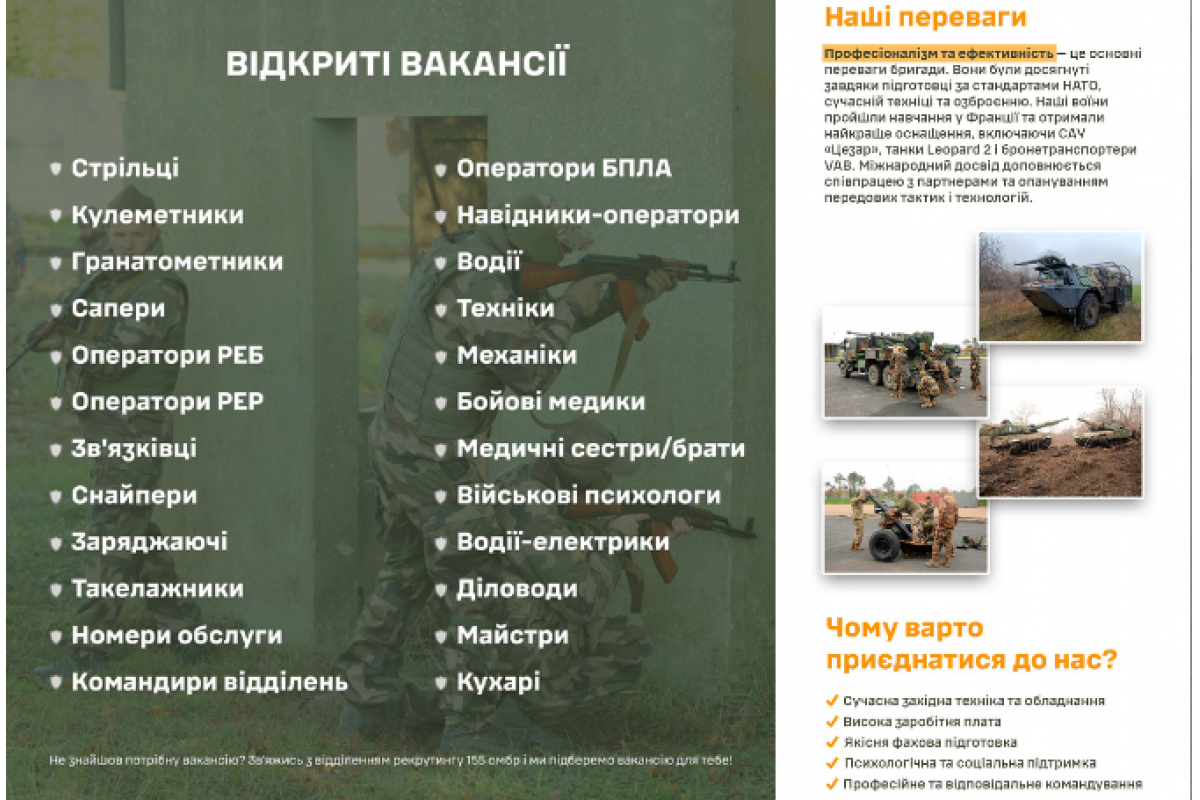 Шукаєте можливість зробити свій внесок у захист України, але ще не вирішили, на якій посаді хочете служити? 155 омбр допоможе знайти ідеальне місце для вас!