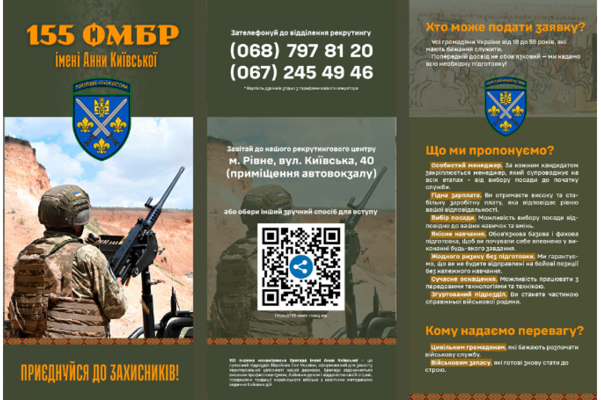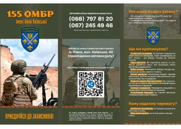 Телефонуйте до відділення рекрутингу 155 омбр: 068 797 81 20, 067 245 49 46.