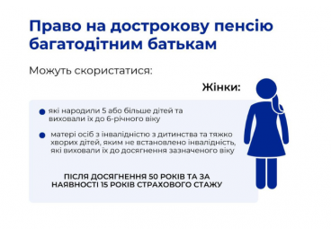 Багатодітні матері та батьки мають право на дострокове призначення пенсії за віком.